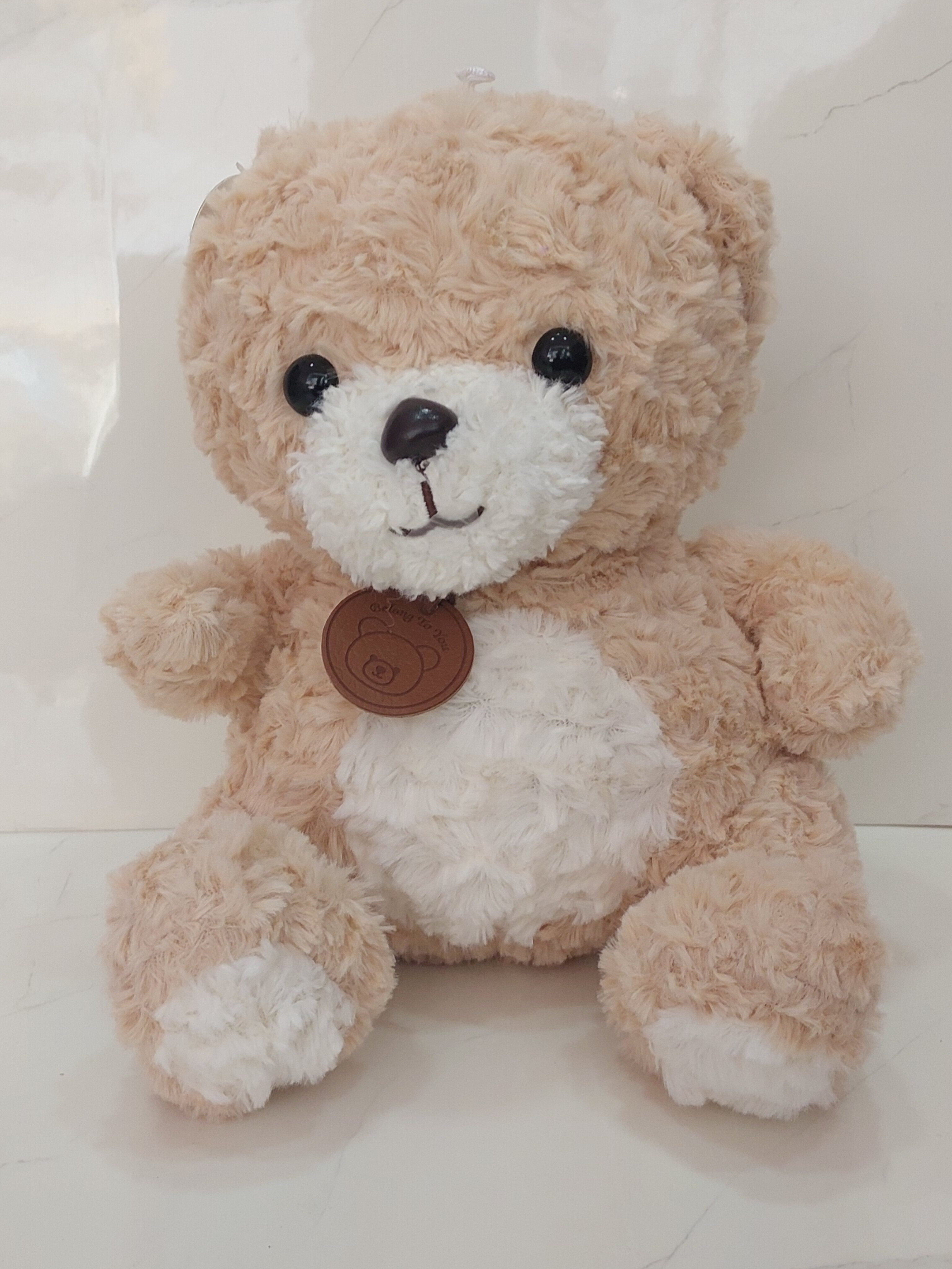 عروسک پولیشی خرس گردنبند چرمی یه خرس خوشگل وبسیارباکیفیت برای هدیه های تولد ولنتاین،و... وارداتی ۳۵سانت